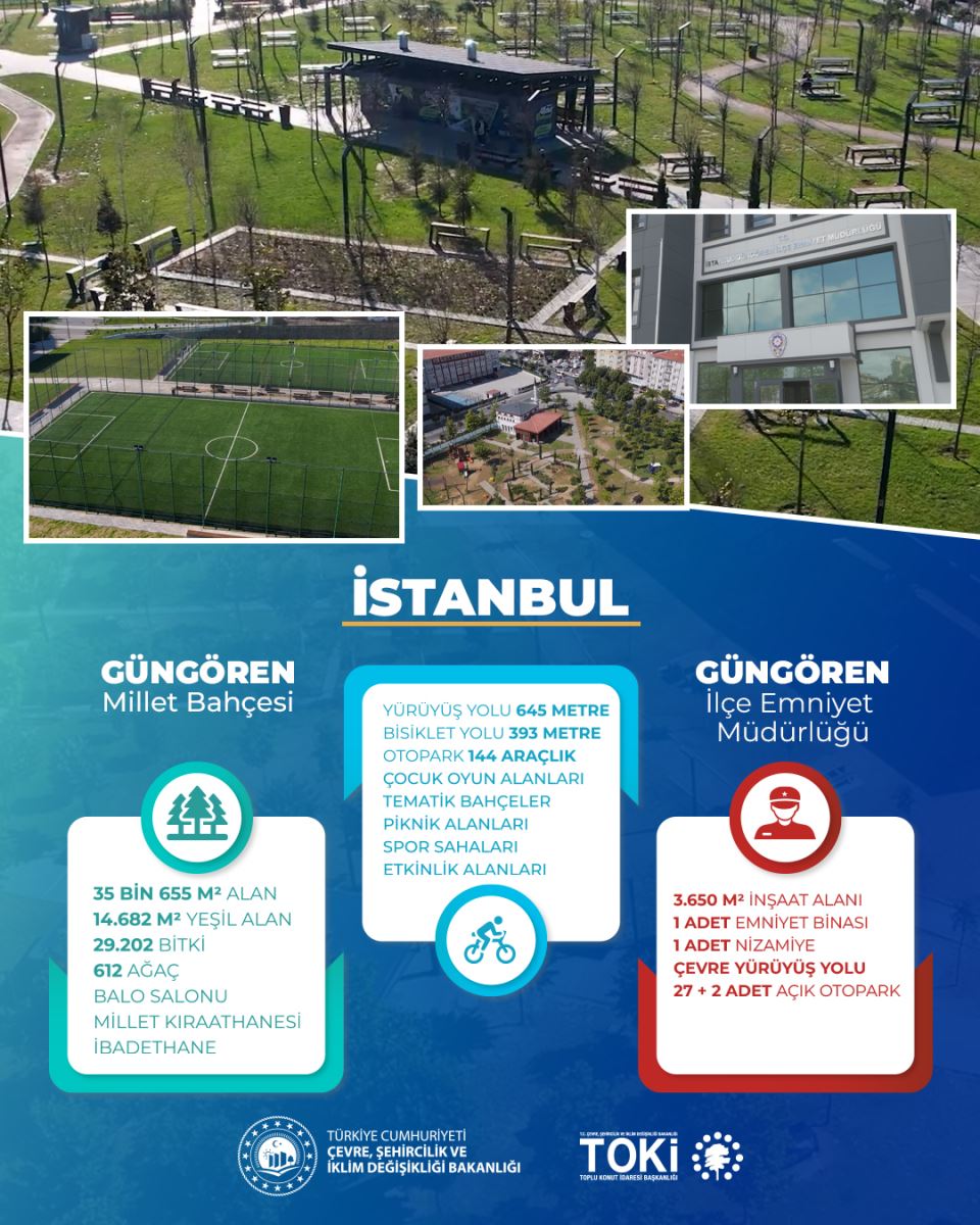 Öte yandan, Çevre, Şehircilik ve İklim Değişikliği, Toplu Konut İdaresi Başkanlığı (TOKİ) tarafından yapımı tamamlanan Güngören Millet Bahçesi ile Güngören İlçe Emniyet Müdürlüğü ve Nizamiye Binası'nın açılışı yapıldı.