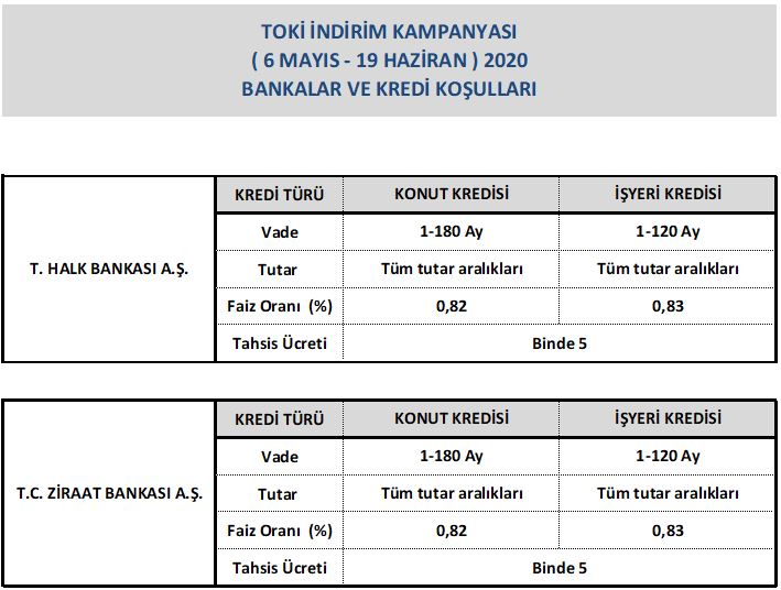 Kampanyadan yararlanmak isteyen konut ve iş yeri alıcıları 06 Mayıs – 19 Haziran 2020 tarihleri arasında ilgili bankaya başvuruda bulunabilecek.